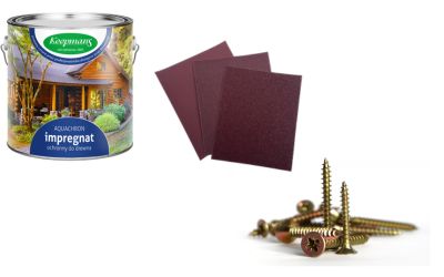 W sprzedaży wkręty, impregnaty, gwoździe, papier ścierny itp.
